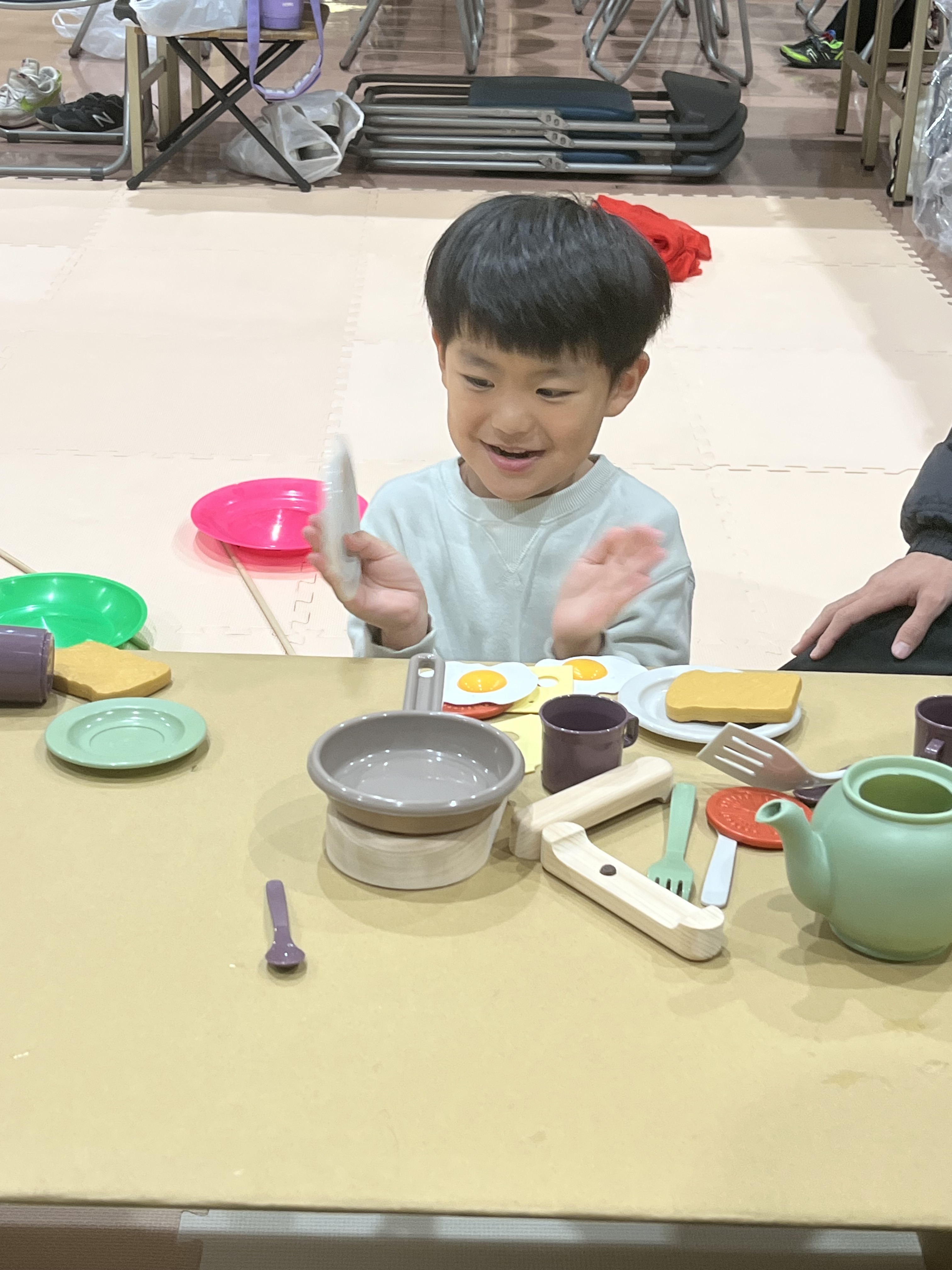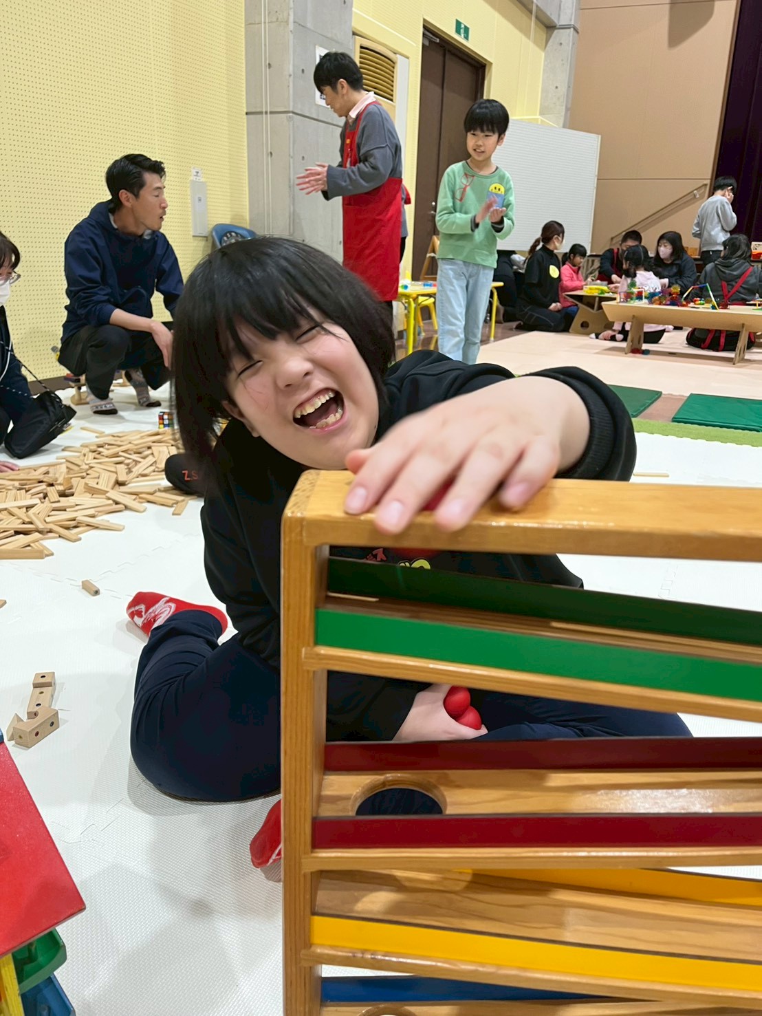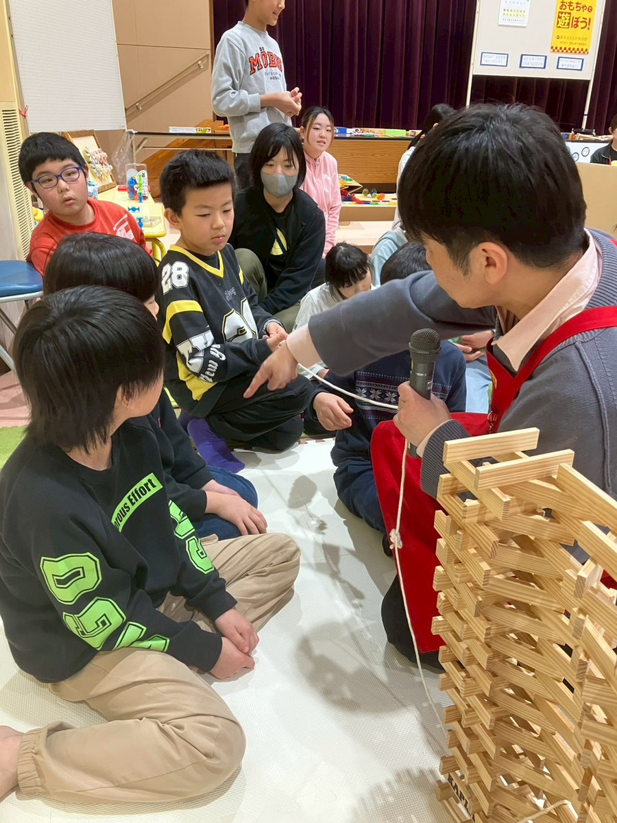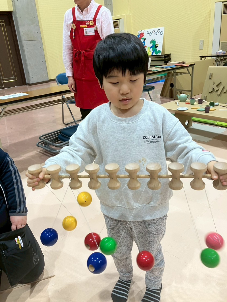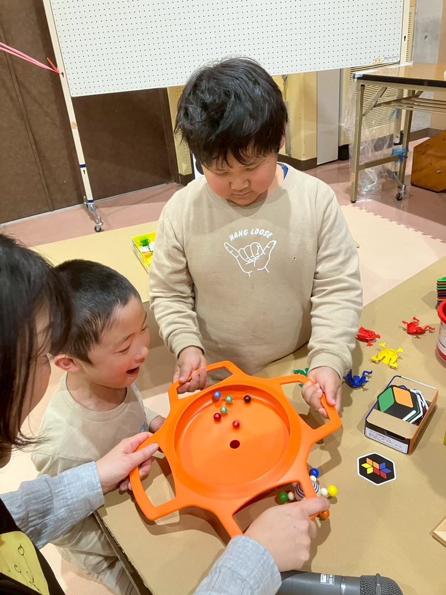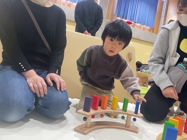新しいおもちゃに触れながら、友だちと笑い合ったり、工夫して遊び方を見つけたりする姿がたくさん見られ、会場は楽しそうな声が広がっていました。