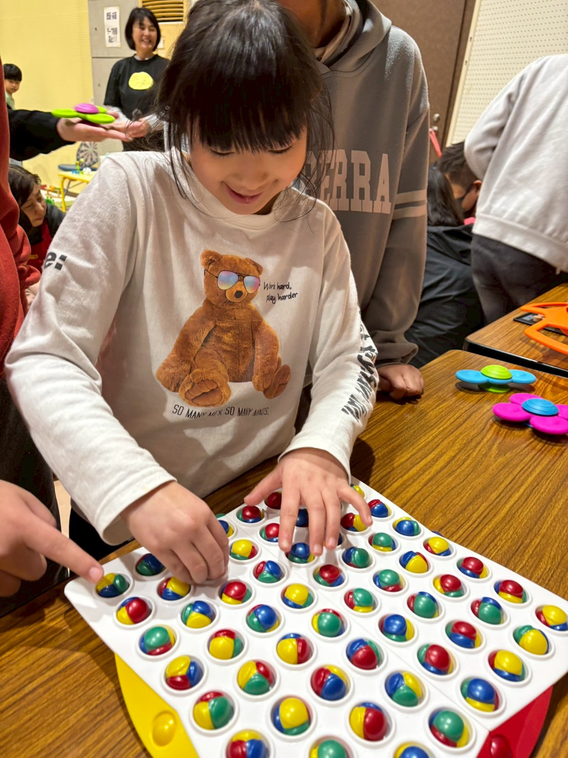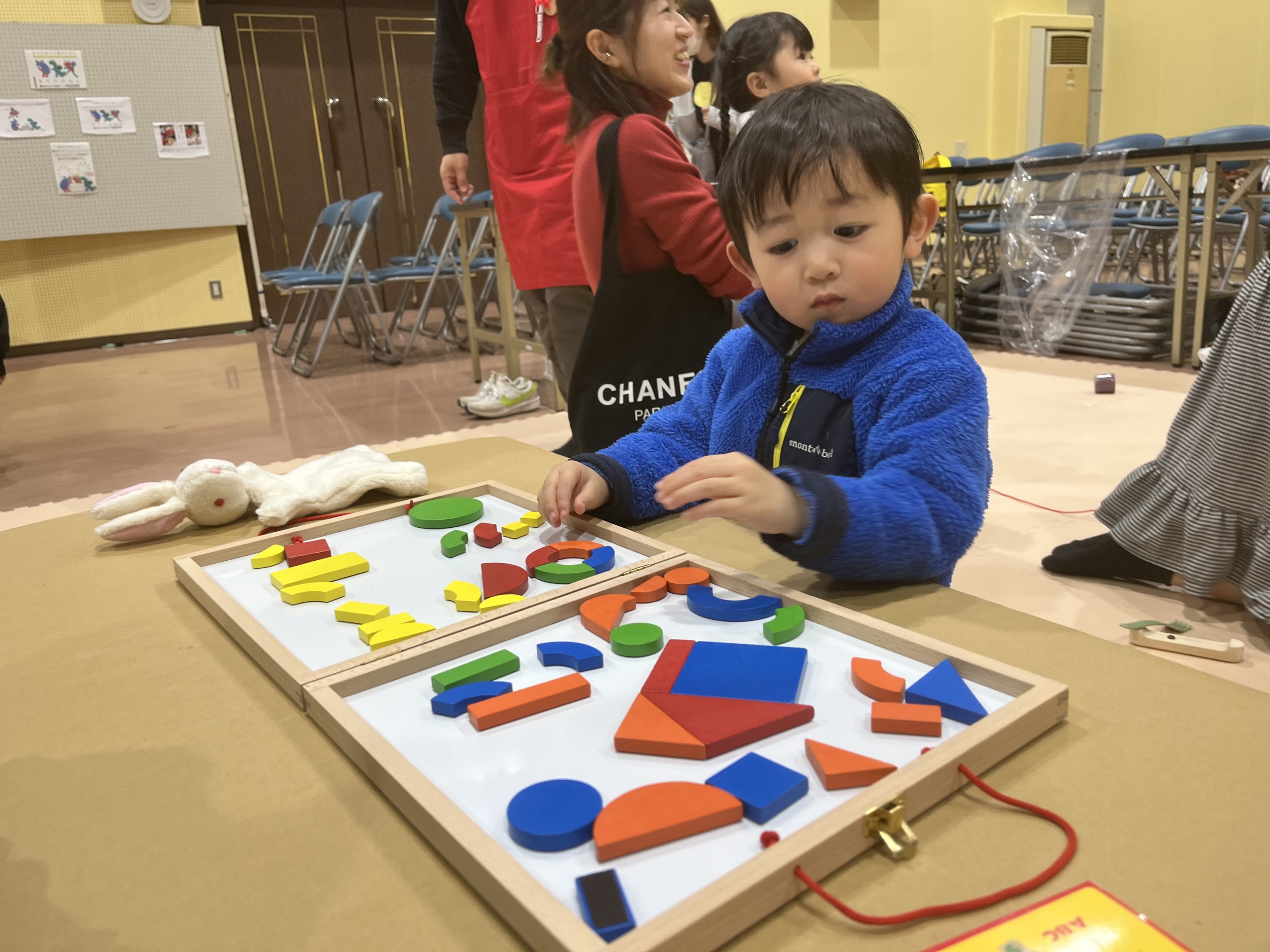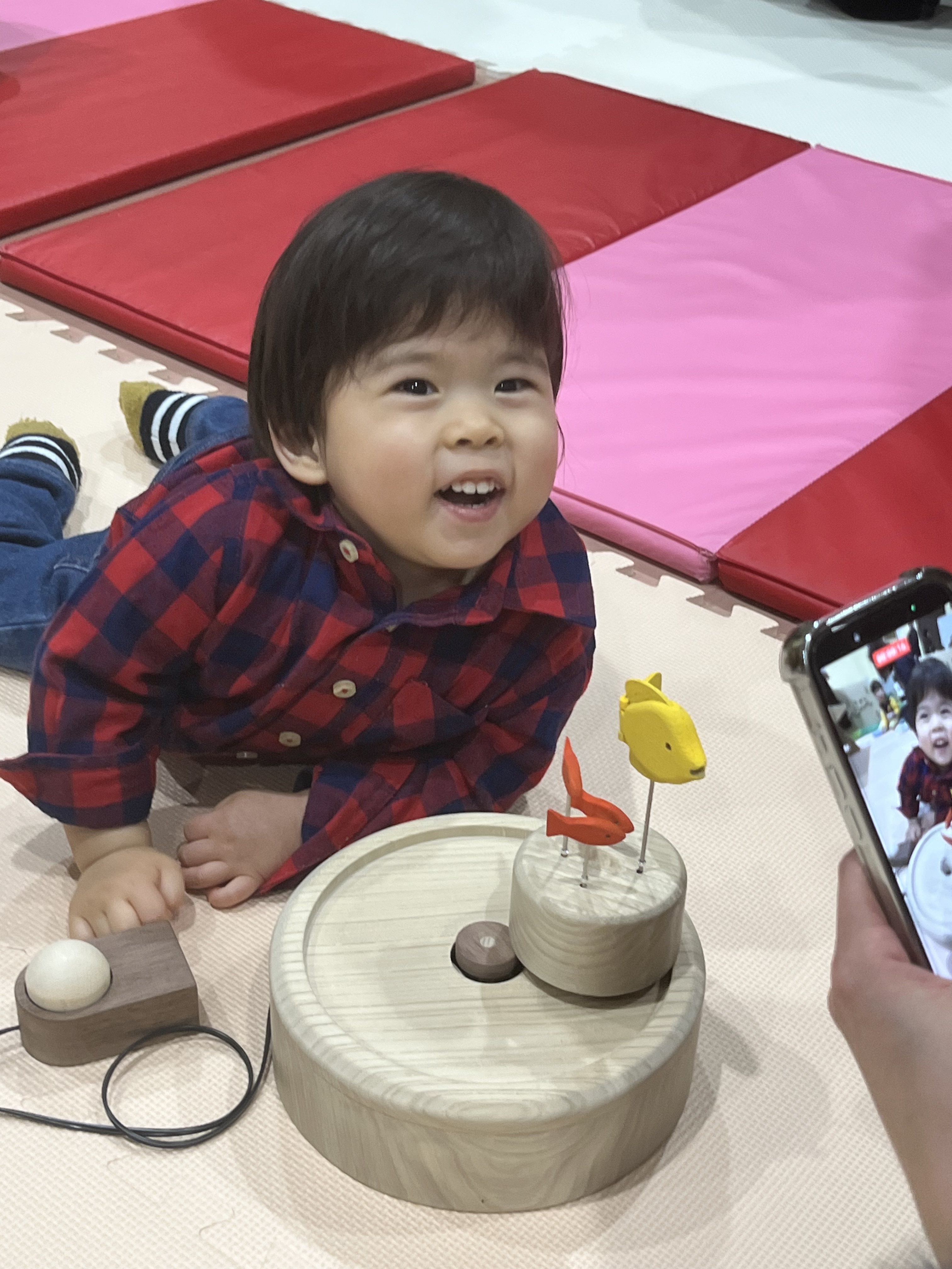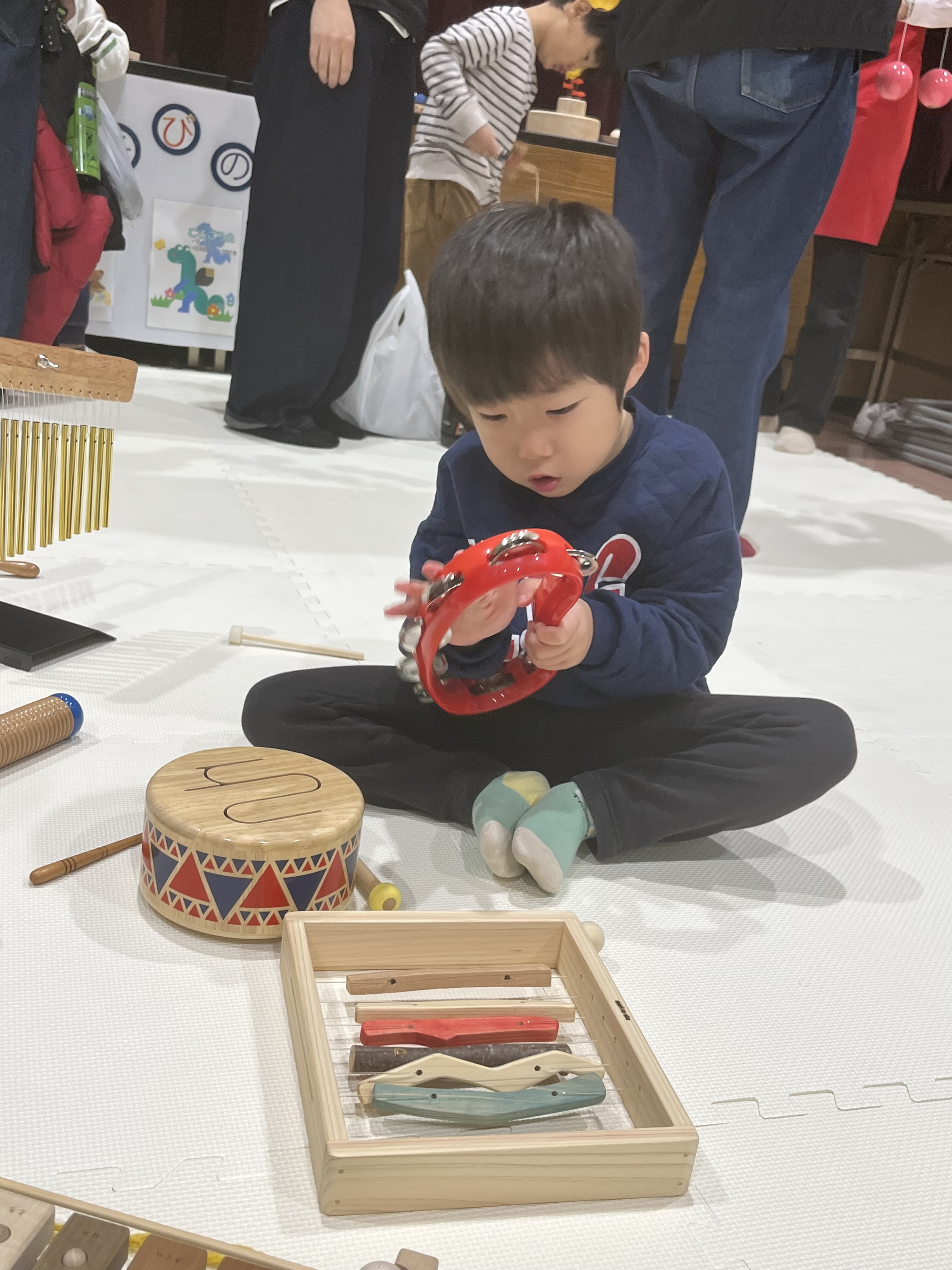 新しいおもちゃに触れながら、友だちと笑い合ったり、工夫して遊び方を見つけたりする姿がたくさん見られ、会場は楽しそうな声が広がっていました。