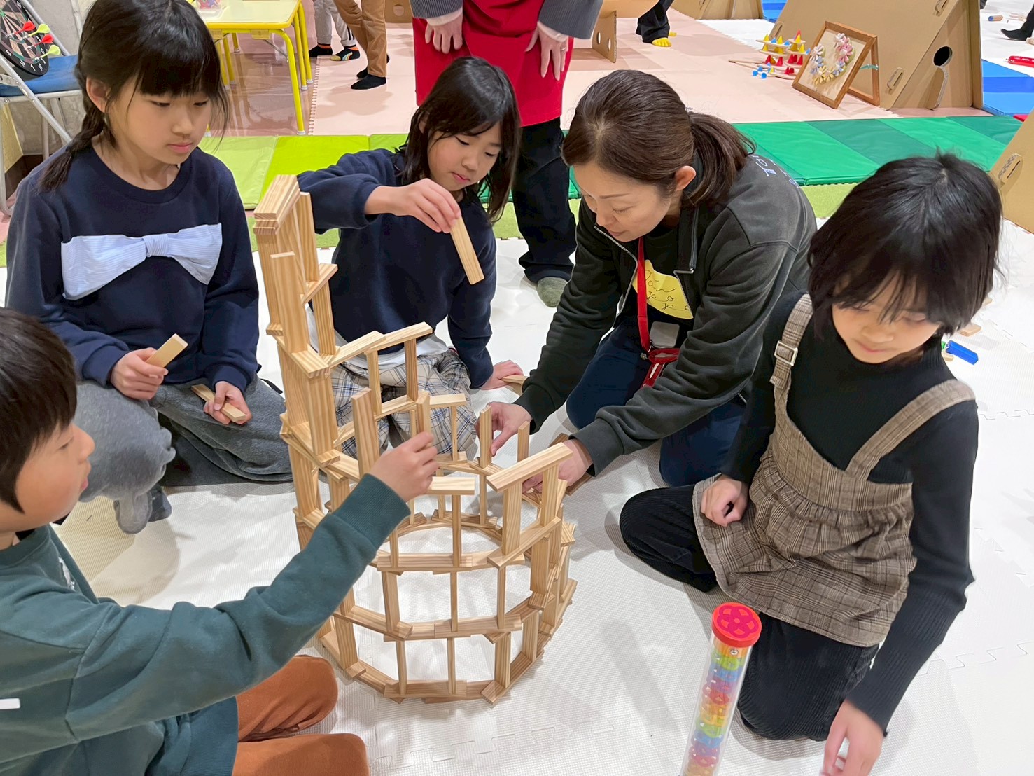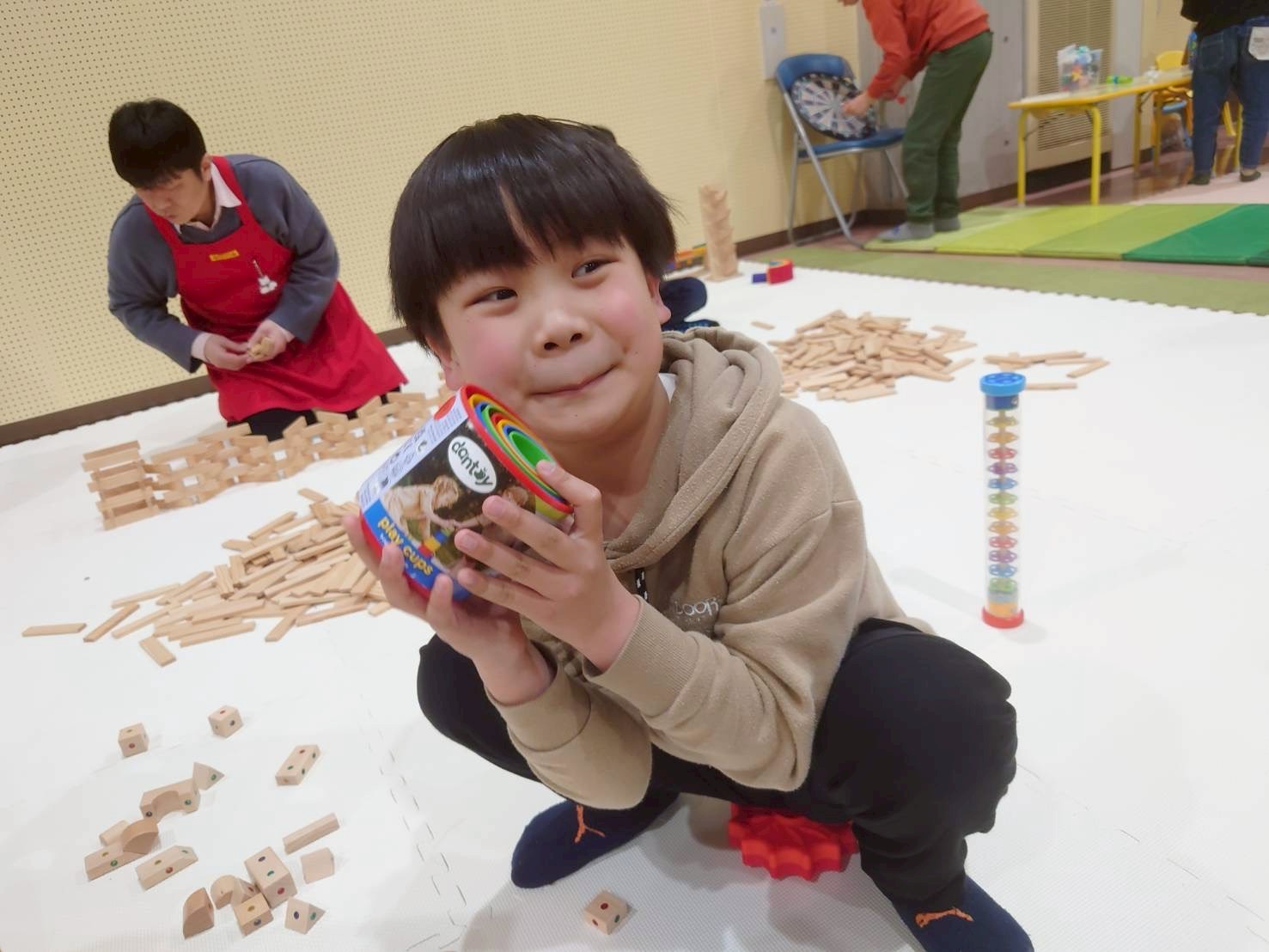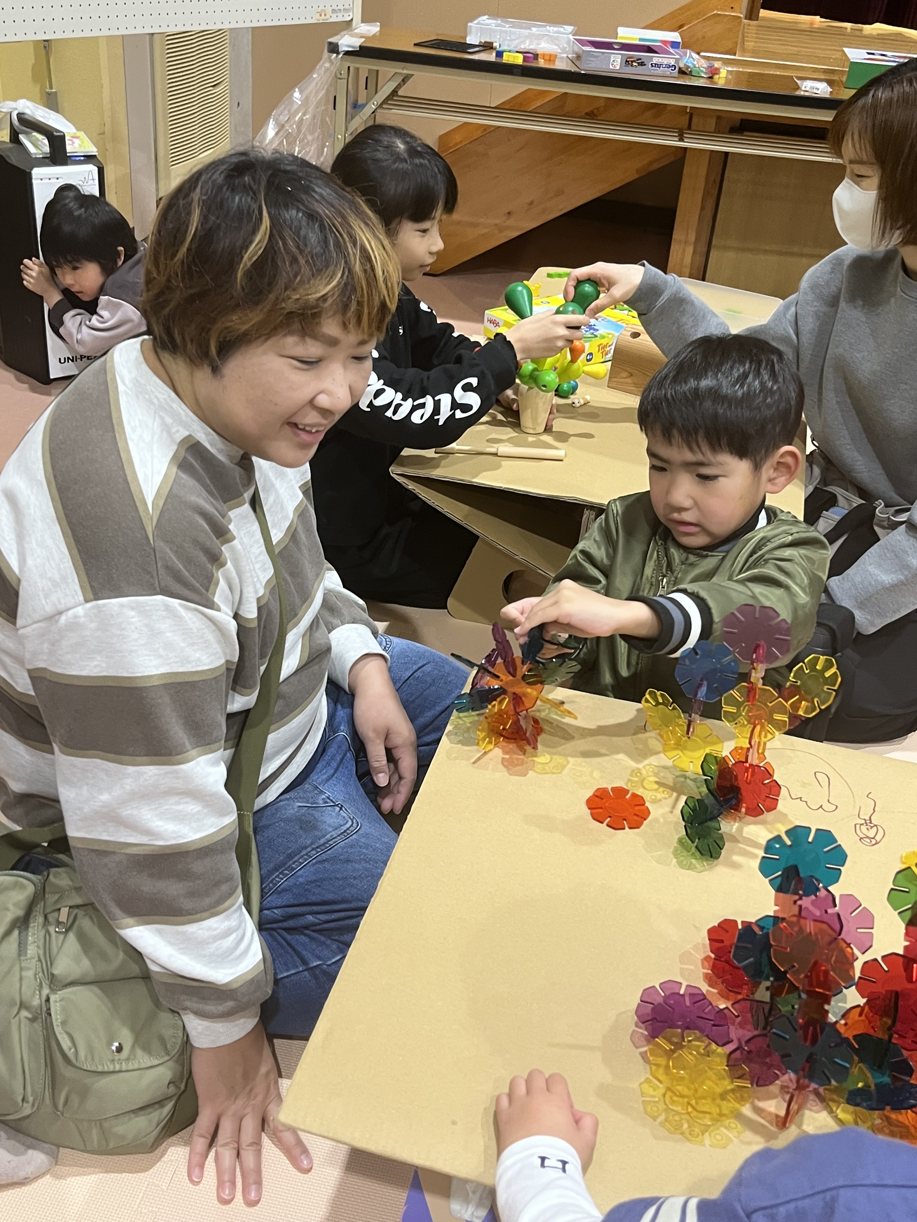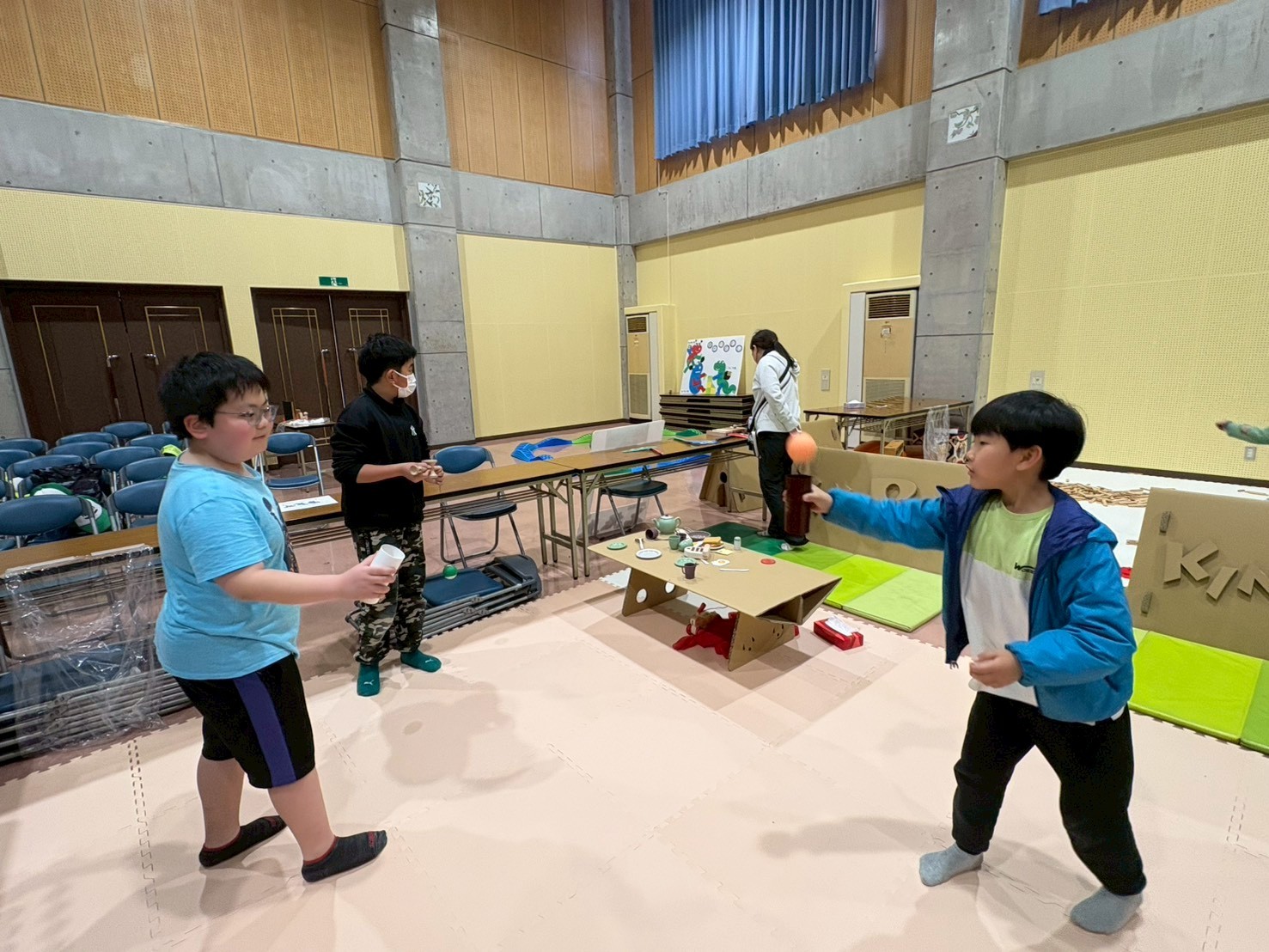 箱を開けた瞬間から「これなに?」「早く遊びたい!」とこどもたちは目を輝かせ、さっそく夢中になって遊び始めました😊
