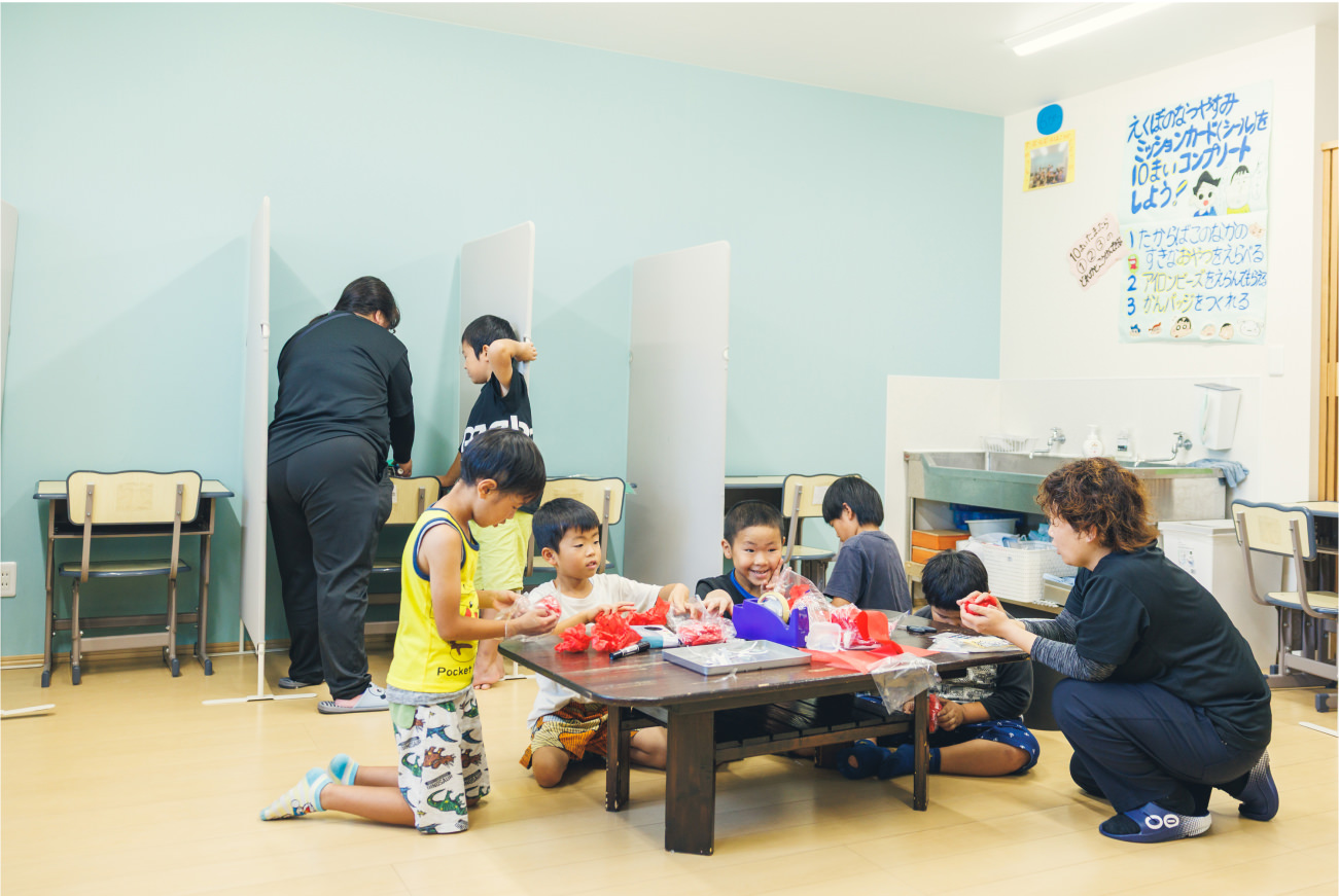 苦手なことがあるのは、大人、こども関係なく、誰にでもあること。一人ひとりの「できること」や「やってみたい気持ち」を大切に、その子なりのペースで、安心して生活の幅を広げていけるよう、おおらかに、こまやかに、さりげなく寄り添い続けます。