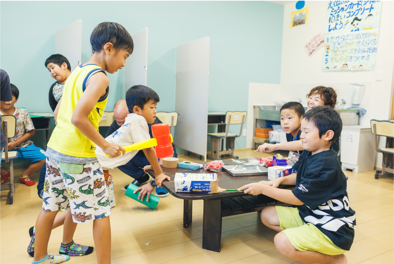 「自分で決めて行動する力」を大切に、学習支援やスポーツ、制作活動などを通じて自主性を育みます。得意な教科を見つけて探究心を養い、苦手な教科は理解するための行動(聞く、調べる、伝える)ができるよう、一緒に経験を積む場所です。