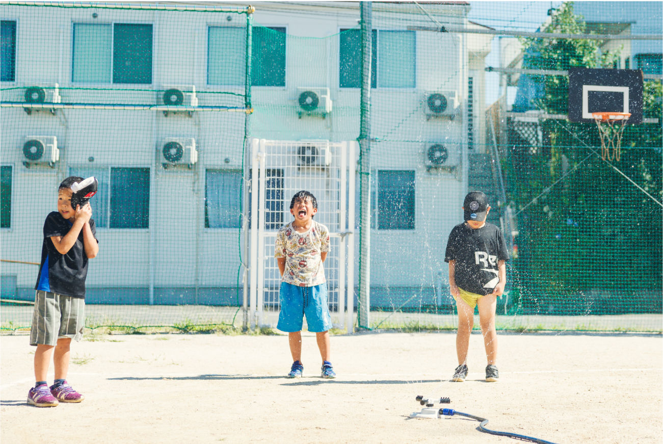 ここは学校でも、家庭でもない、もうひとつの居場所です。広い運動場やプレイルームもあり、体を動かしながら楽しめる時間もたっぷり。