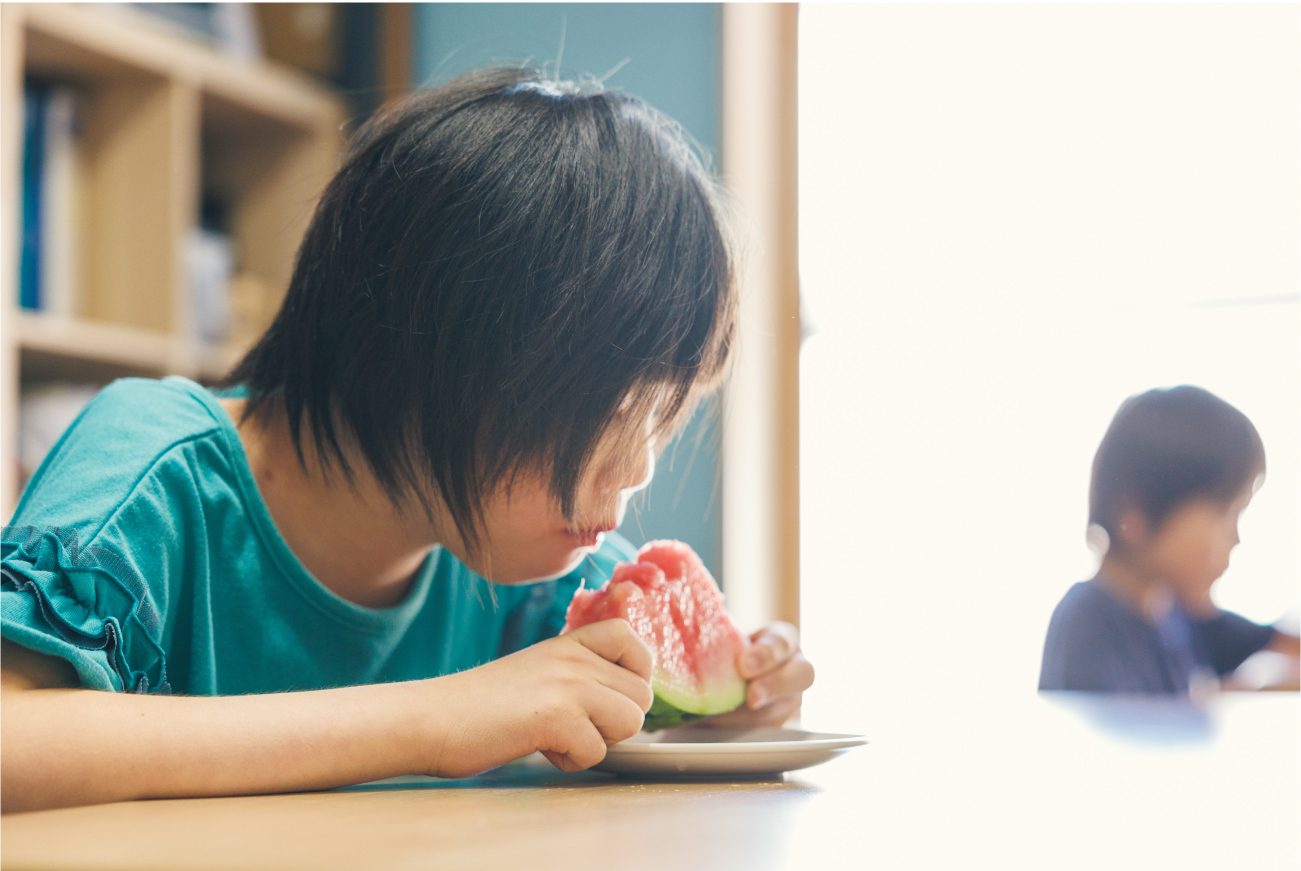 友達と一緒に食事を楽しむ「食育」にも取り組み、豊かな放課後を過ごせる場所です。遊びや運動、学びや体験を通して、時には友だちと、時には自分のペースで、自分の「好き」や「得意」「楽しい」を見つけていきます。