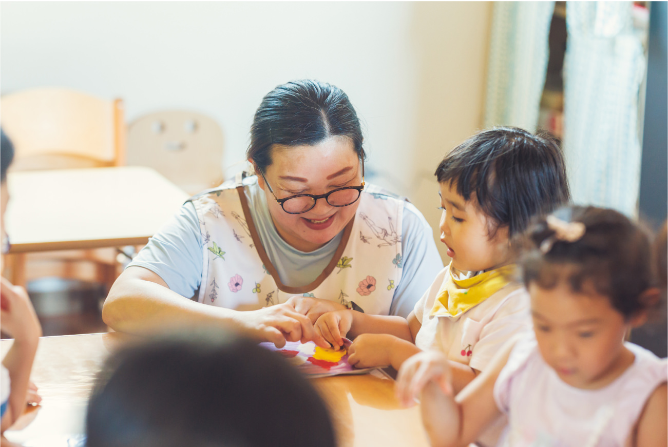 遊びや生活の中で、一人ひとりの成長に合わせたサポートを行います。「失敗しても大丈夫」という経験が安心感に、「ひとりでできた」という成功体験が次への勇気につながり、園や次の学校生活につながる力が少しずつ育っていきます。
