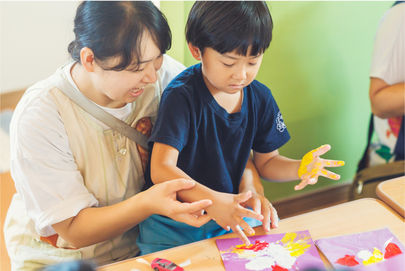 友達と一緒に楽しむ活動や、協力して取り組む体験も充実。自分の「色」(得意なこと)を見つけ、自信を育めるようサポートしています。