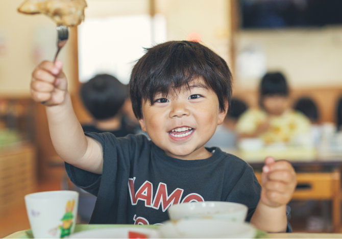 「今から食べる!」「今日はこれくらいにしよう」と自分で決めることで、完食できた喜びが自信につながり、食べることがもっと楽しくなります。また異年齢のお友達や好きなお友達と一緒に食べることで「食べてみようかな」という気持ちが芽生えることも。