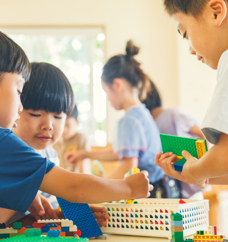 少人数の環境の中だからこそ、自然と生まれる関わり合いを大切にしています。また隣りに学童があるため園庭で一緒に遊ぶことも。異年齢児との関わりを通じて、年下の子を思いやる心、年上の子に憧れる心が生まれています。