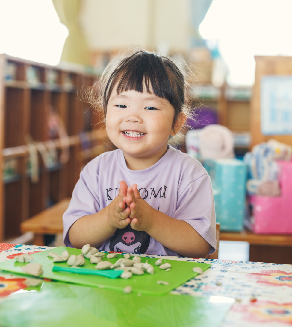 小規模保育ならではの機動力を活かして、街へ買い物に行ったり、公共交通機関を使ってお出かけしたり。雨の日はレインコートを着て散歩、夏には泥んこ遊び、こども達が行き先を決める遠足など、日常にたくさんの「はじめて」を散りばめています。